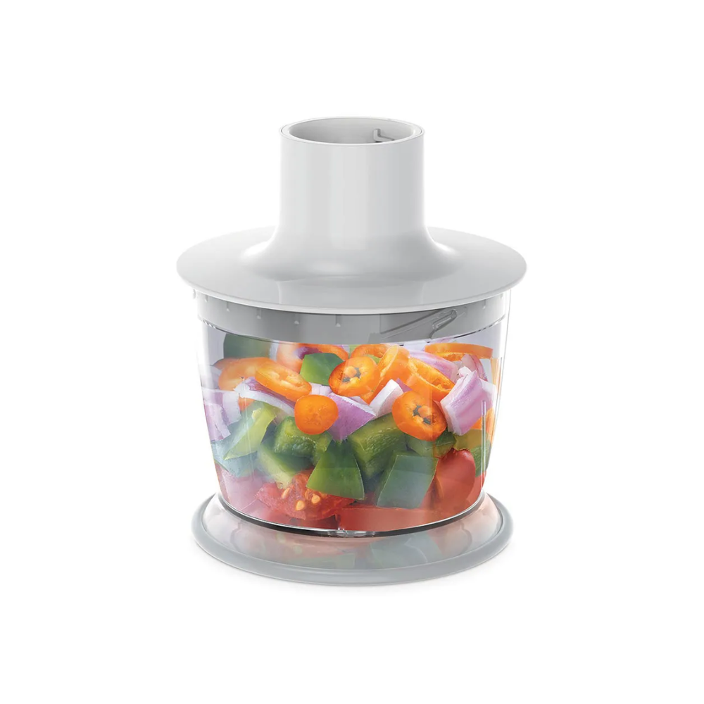 - Incluye prácticos accesorios con tapas de doble función, batidores y picatodo, que permiten preparar y almacenar una gran variedad de recetas