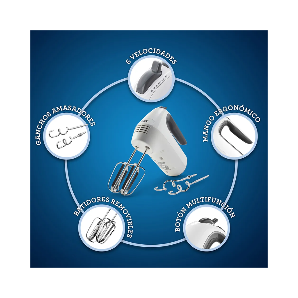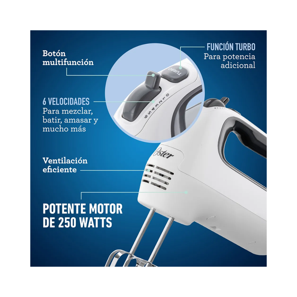 Batidora Manual Oster, 250 W, 6 Velocidades, Blanco