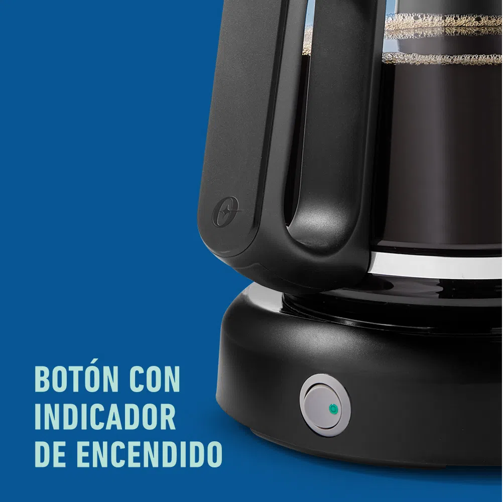 - Luz indicadora te permite saber si la cafetera está encendida o apagada