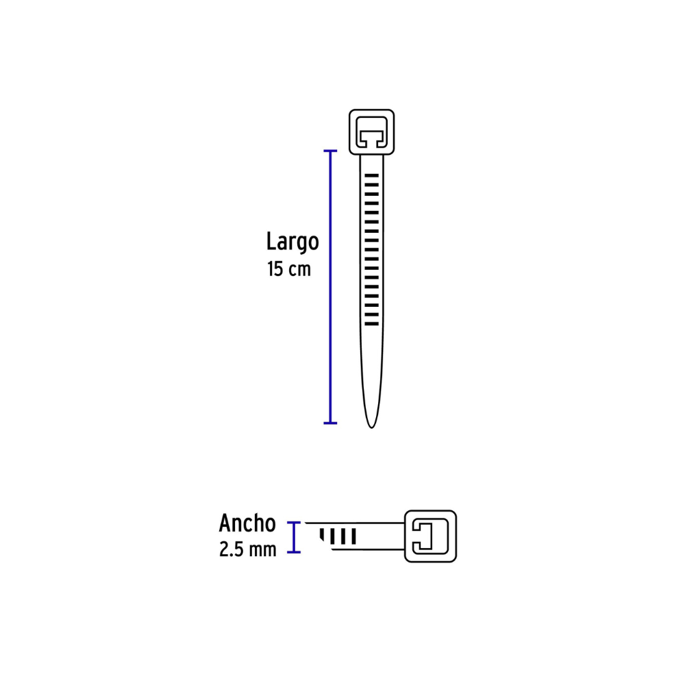 Cincho plastico 18 lb 15 cm negro bolsa con 100 pzas