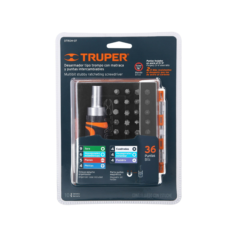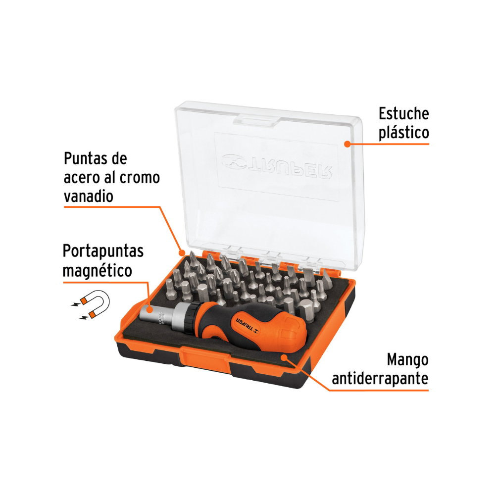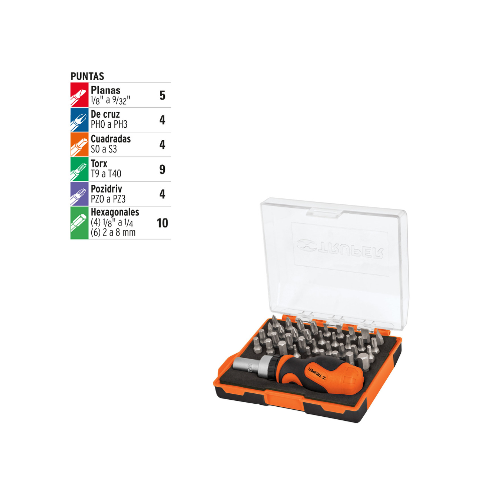 Desarmador tipo trompo con matraca 37 piezas