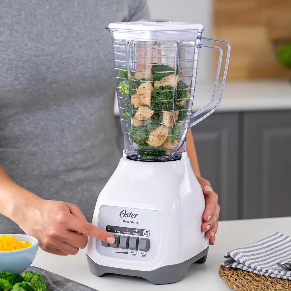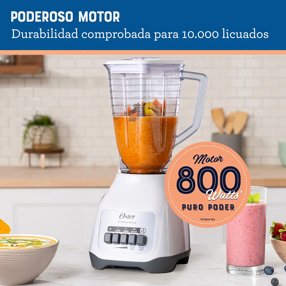 El poderoso motor con alta fuerza de torsión y vaso de plástico resistente a las roturas de la licuadora Oster® son ideales para preparar una amplia variedad de recetas frías y calientes, jugos, batidos y mucho más.