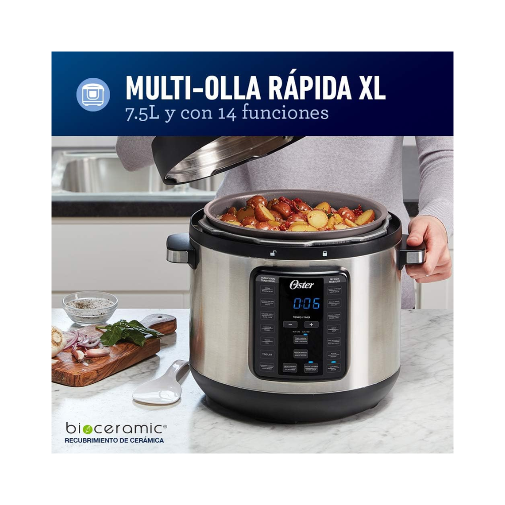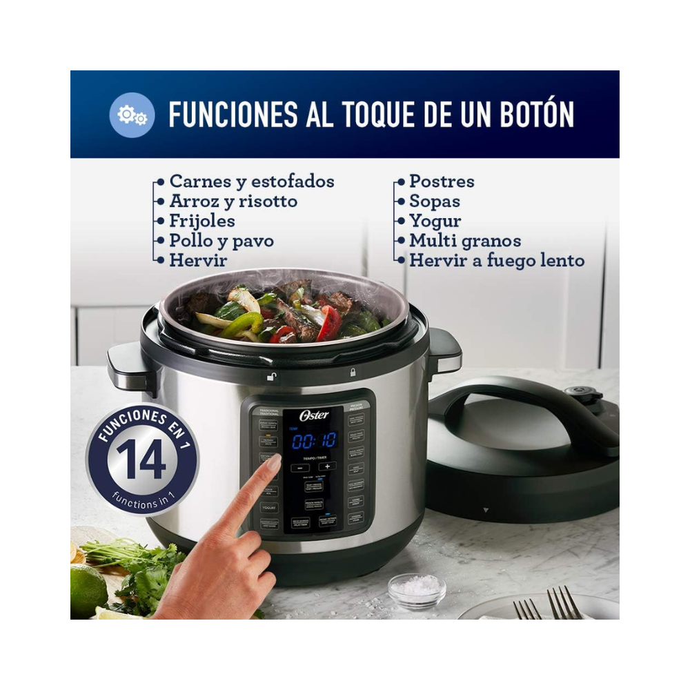 Multi-Olla Oster 7.5 Litros, 14 Funciones, Color Acero