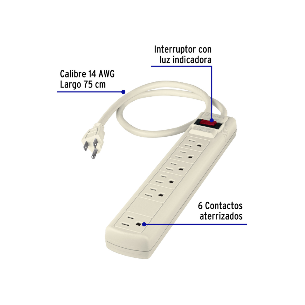 Multicontacto uso rudo 6 entradas supresor 450 joules