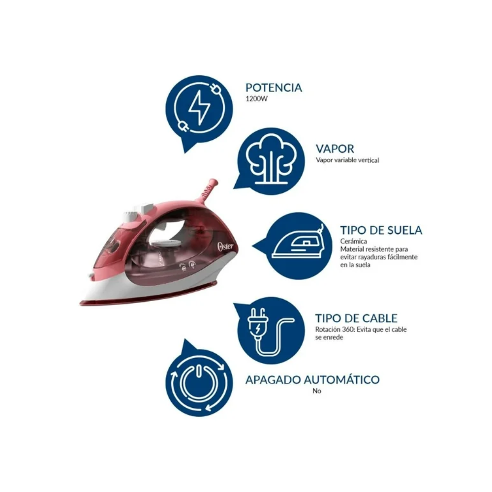 Plancha De Vapor Oster, Cerámica Compacta, Rosa