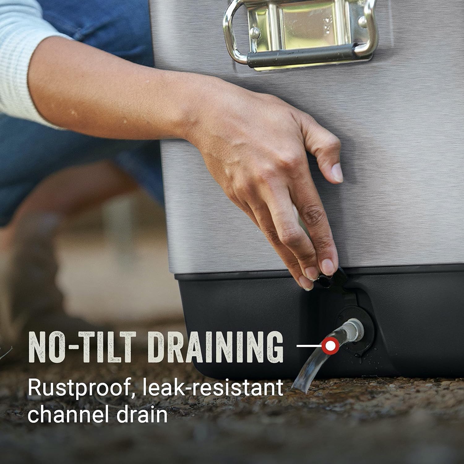 Construida para durar, hielera con cuerpo de acero para soportar tu día al aire libre, con asas de acero de agarre cómodo diseñadas para levantar y transportar fácilmente su peso de 17.6 Libras (7.98 kg).