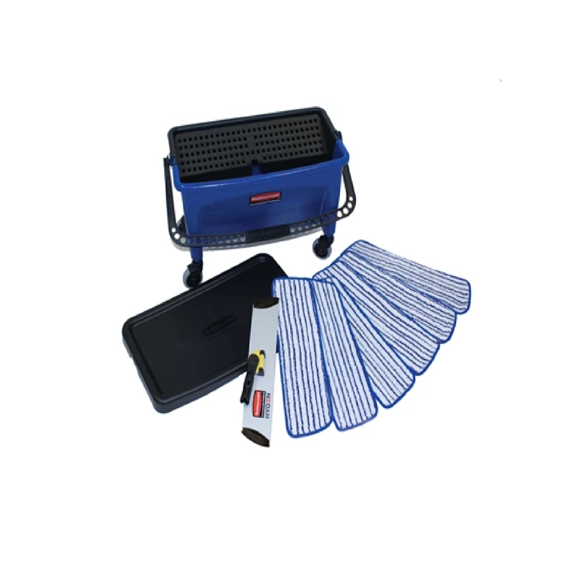 SISTEMA DE ACABADOS CON MICROFIBRA, BALDE C/ TAPA, TAMIZ, MOPAS Y ARMAZÓN