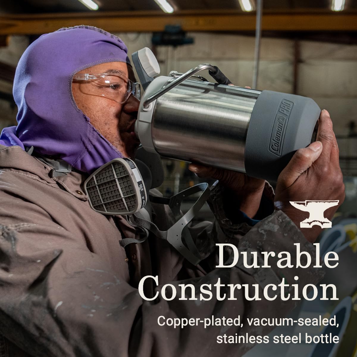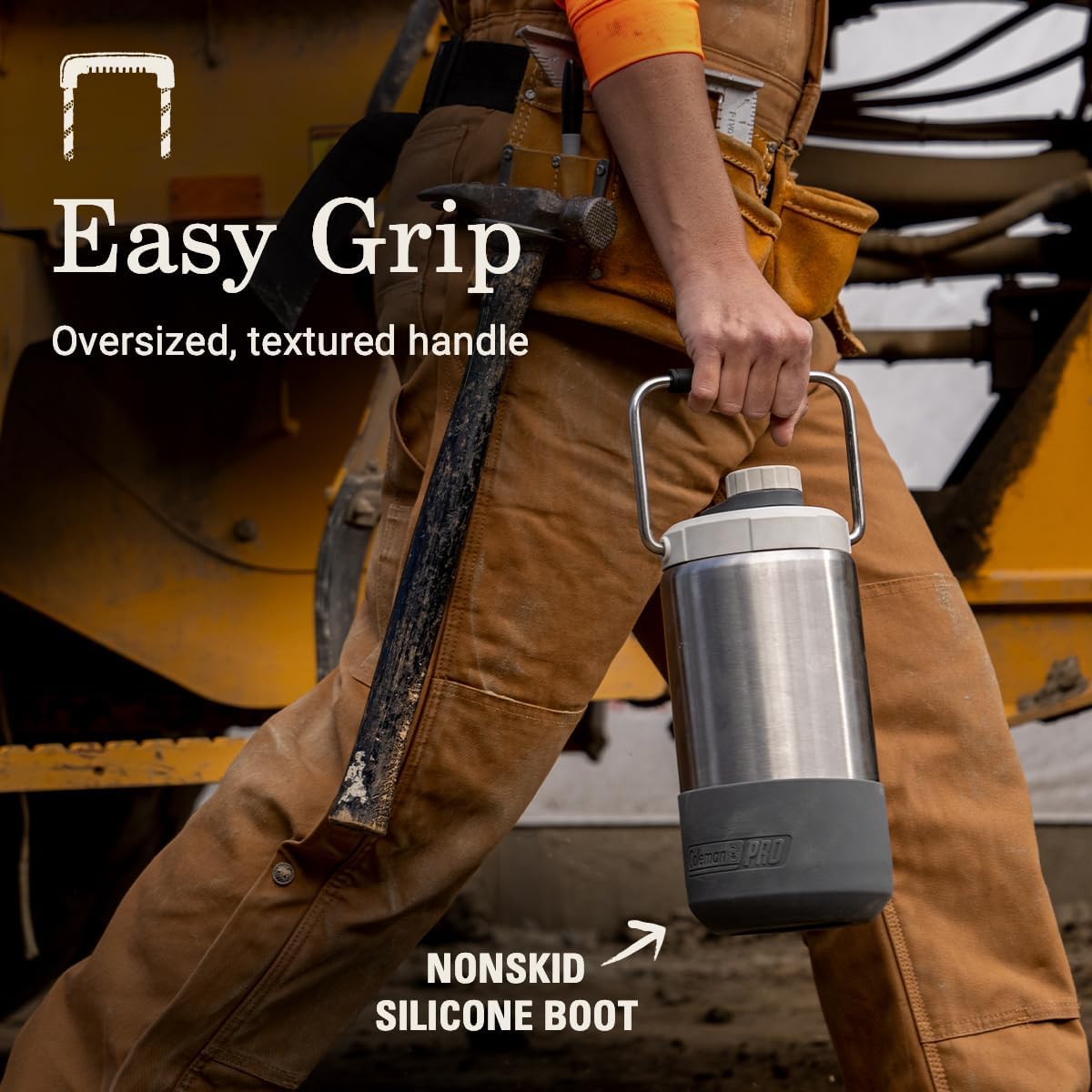 Lleve agua consigo en el lugar de trabajo con este Coleman Pro 1/2 Gal. Jarra para bebidas. Está fabricado con acero inoxidable duradero recubierto de cobre y rematado con una tapa completamente aislada para mantener el agua fría bajo el sol. La funda de silicona de esta jarra de agua ayuda a que permanezca en su sitio cuando la colocas y luego se quita para facilitar la limpieza en el lavavajillas. Además, un asa de gran tamaño permite transportarlo cómodamente cuando está lleno hasta el borde. Está respaldado por una garantía limitada de cinco años y cuenta con extras inteligentes como una tapa a prueba de fugas atada que es fácil de manejar con guantes de trabajo y que no se escapará incluso si se cae.